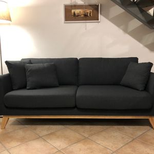 Il divano OSLO è l'immagine della perfezione con un look ispirato allo stile scandinavo. Piedi inclinati in legno chiaro, rivestito in tessuto, dalle forme raffinate, il divano presenta tutte le caratteristiche dei mobili scandinavi. Il risultato è quello di un look perfetto che si armonizzerà senza problemi al suo arredamento. Che si tratti di un universo cocooning o contemporaneo, il divano saprà diventare l'elemento centrale del suo interno. Il cuscino della seduta e i cuscini dello schienale, e il complemento di 3 piccoli cuscini le regaleranno un confort ineguagliabile. Questo divano diventerà senza dubbio il perfetto alleato della vita di tutti i giorni. Il divano è disponibile in grigio chiaro, grigio scuro e blu laguna.